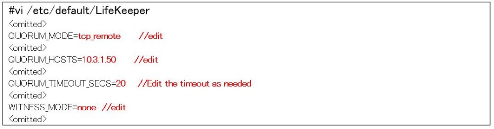 - Configure Quorum mode and Witness mode. Edit the following files on both cluster nodes.