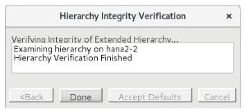 - After receiving the message “Hierarchy Verification Finished“, click Done.