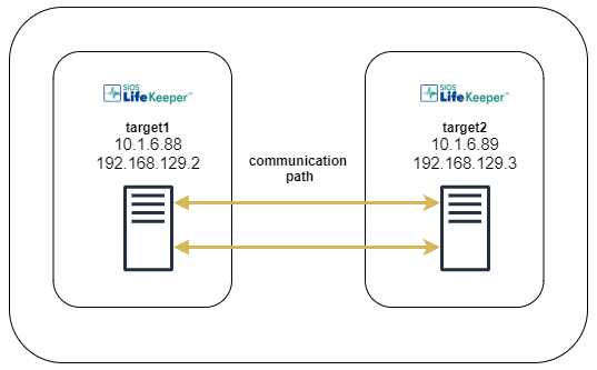 LifeKeeper configures clusters by connecting multiple nodes to each other. Availability can be maintained by switching to resources on another node in the cluster in the event that a node fails. To achieve this, it is necessary to configure paths for communication between nodes in advance. These paths are called “communication paths” in LifeKeeper.