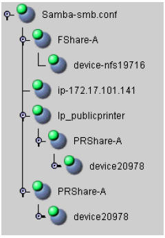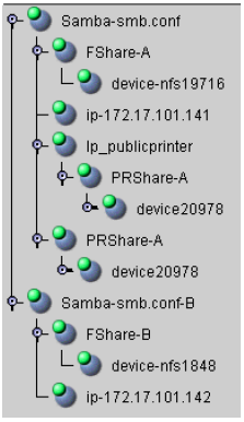 - The clients connect to the Samba servers using the NetBIOS name LKServerA over the protected IP address (172.17.101.141), which is defined by the interfaces directive of the configuration file.