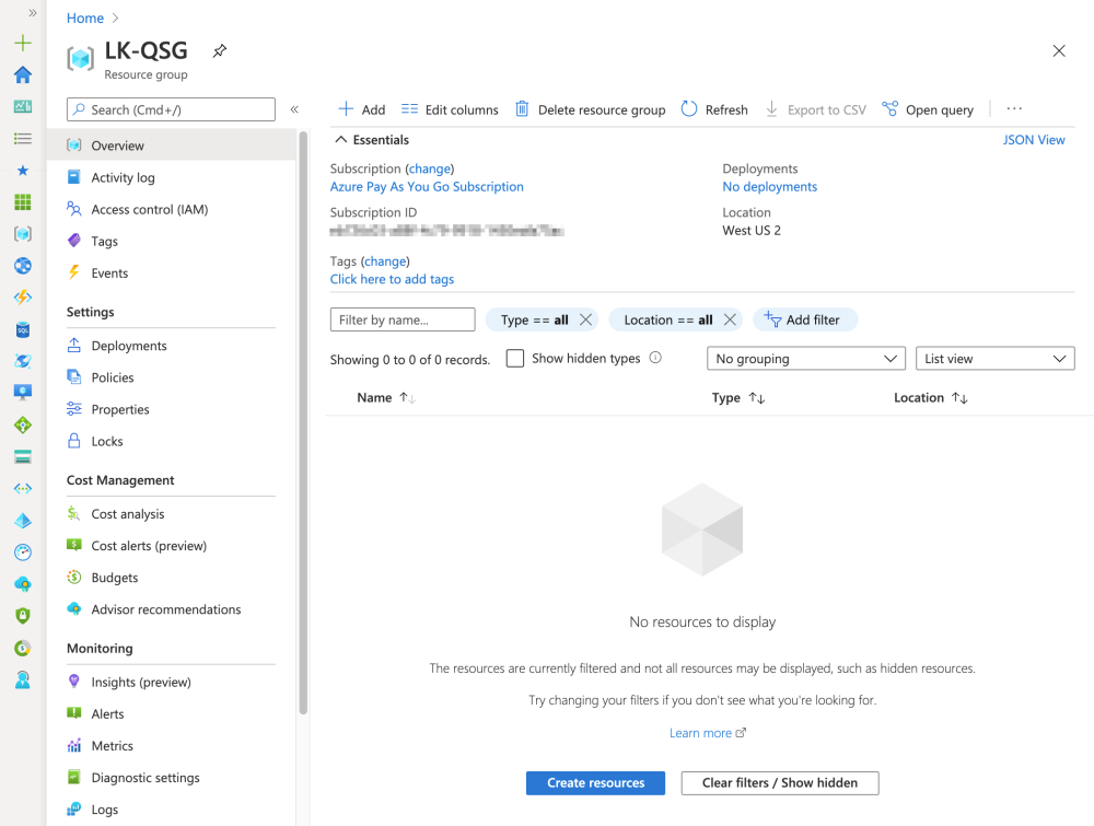 In this section, we will create a Resource Group for testing LifeKeeper (we will name it LK-QSG) as follows: