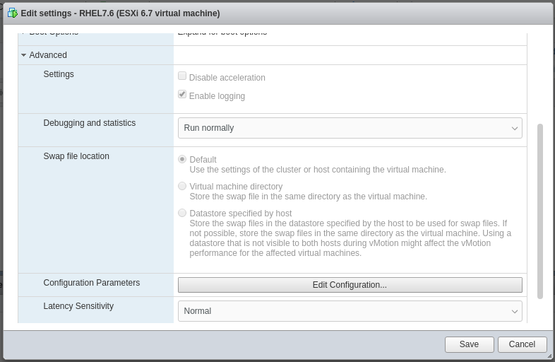 Open the edit dialog and add the above parameters for each VM: