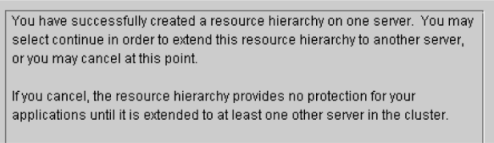 CAUTION: If you click the Cancel button at any time during the sequence of creating your hierarchy, LifeKeeper will cancel the entire creation process.