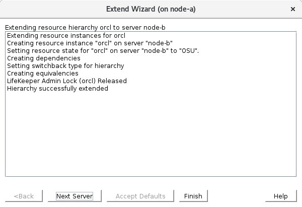 - Once the Extend Wizard configures the Oracle resource, click “Finish”.