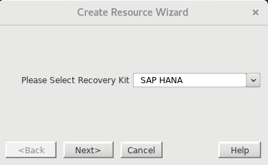 icon to open the Create Resource Wizard. Select the “SAP HANA” Recovery Kit.