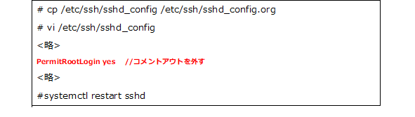 ログインに成功したら、これ以降の作業は、すべて root で実施します。