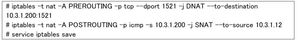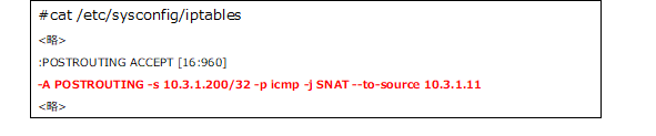 - iptables の設定が追加されていることを確認します。以下は稼働系の例です。