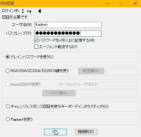 - ローカル PC でターミナルソフトウェア(TeraTerm 等)を使用し、仮想マシン作成時に作成したアカウントで、仮想マシンの Public IP に SSH アクセスします。