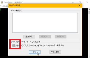 - 次に、ローカル PC のターミナルソフトウェア (TeraTerm 等) に、X11 forwarding の設定を行います。