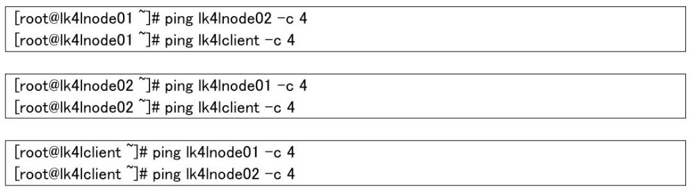 - それぞれが、相互にホスト名で通信できることを確認します。