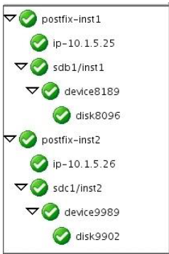LifeKeeper GUIで Postfix リソースの階層構造は下記のようになります。