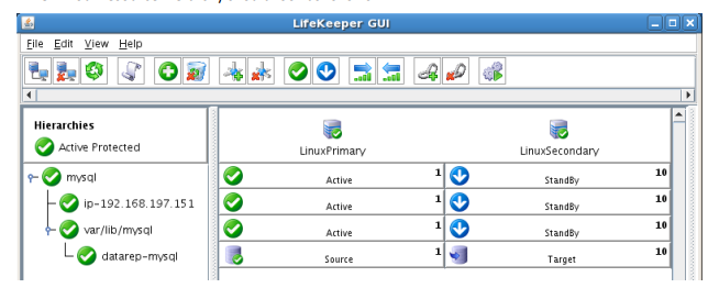 - Note: LifeKeeper will automatically identify that the MySQL resource has a dependency on the FileSystem (Data Replication) resource (/var/lib/mysql). The Filesystem Resource will appear underneath the MySQL resource in the GUI