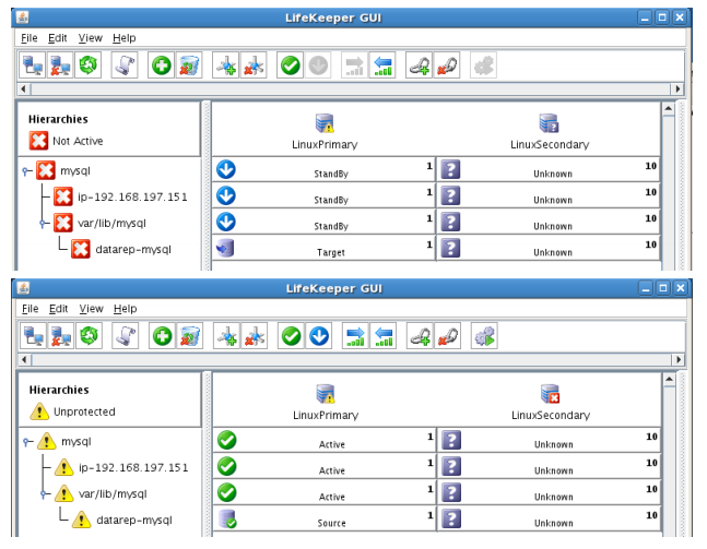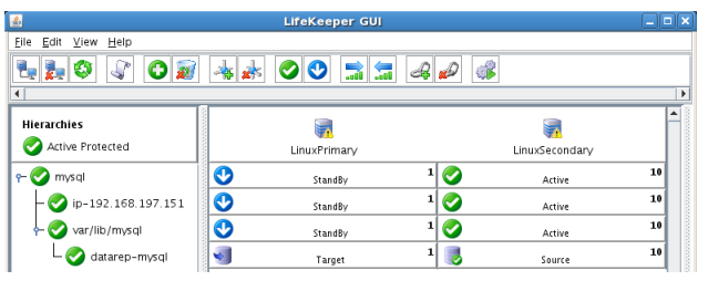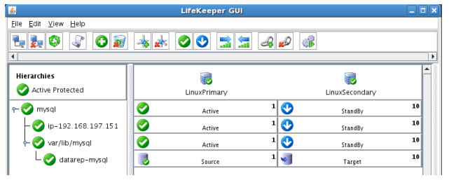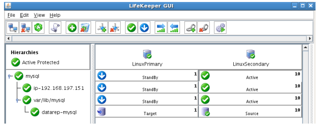 - Using the LifeKeeper GUI, verify that the MySQL and dependent resources are active on LINUXSECONDARY.