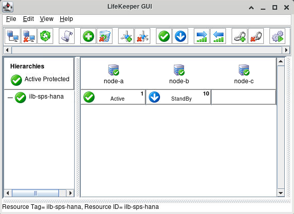 - Following the steps in Responding to Load Balancer Health Checks, create a LifeKeeper LB Health Check resource, ilb-sps-hana, with the following properties. Notice that ilb-sps-hana is created on node-a and extended to node-b. The