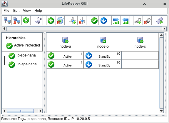 Once the IP resources have been created successfully, the LifeKeeper GUI should resemble the following image.