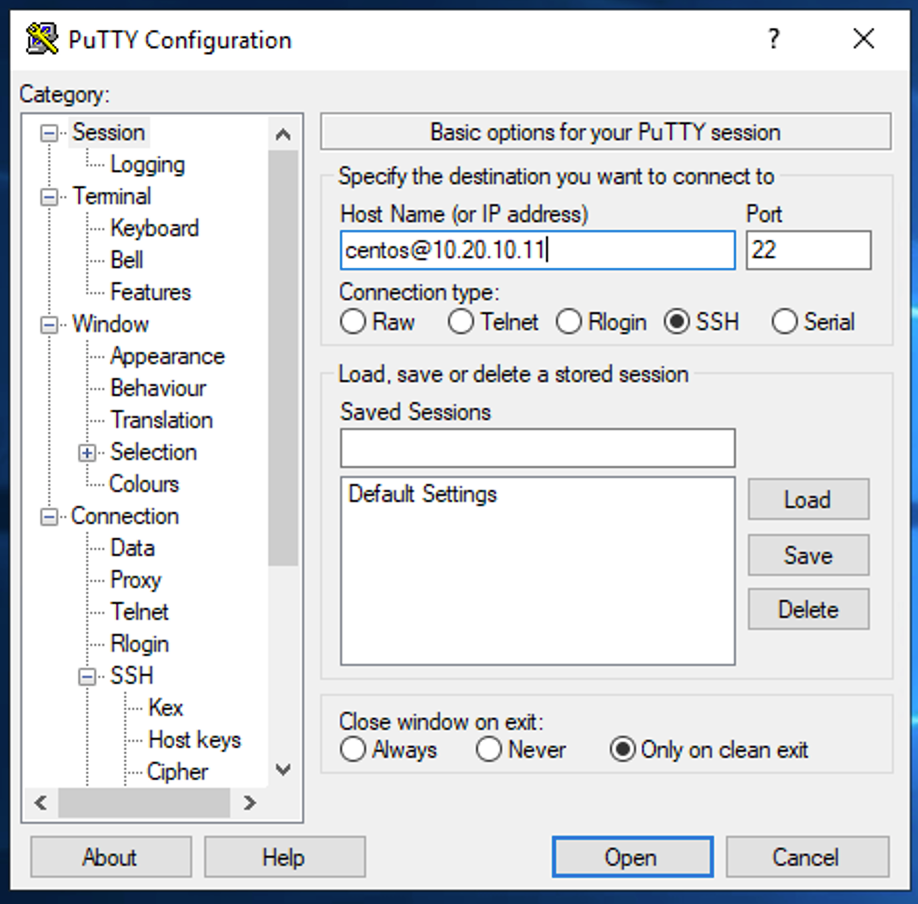 Configure PuTTY