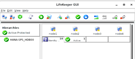The LifeKeeper GUI running on the upgraded server will show the SAP HANA resource on the standby server with an unknown status until quickCheck updates the info field on the standby server.