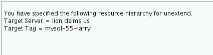 - 拡張解除の対象として選択したターゲットサーバと MySQL リソース階層を確認する情報ボックスが表示されます。