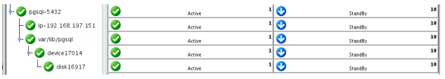 - The Virtual IP address resource (192.168.197.151) will now appear underneath the PostgreSQL resource in the LifeKeeper user interface. This ensures that resources move together, and are started/stopped in the proper order.