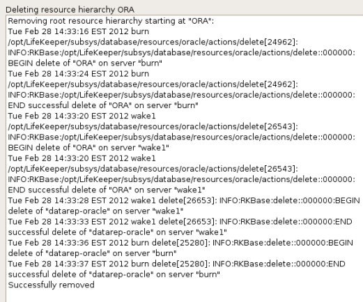 - Another information box appears confirming that the Oracle resource was deleted successfully.