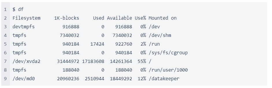 During these steps we will be switching data storage between nodes. Here are two options to check whether the data storage (per this guide, located at /datakeeper) is available in a node.