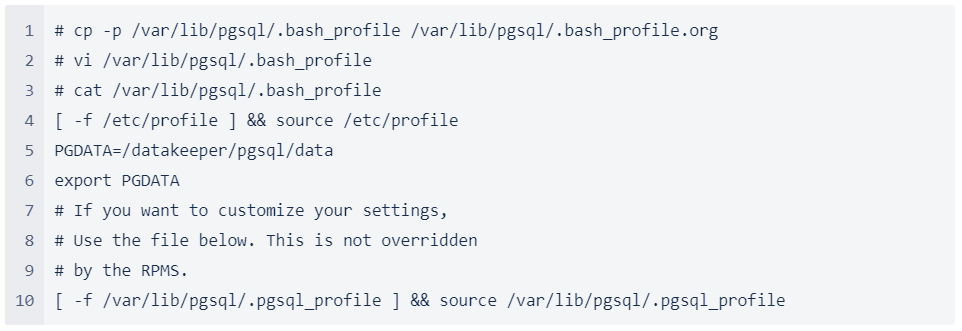 Change Directory to Store Data to Under /datakeeper/pgsql/data