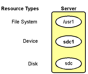 - disk - SCSI ディスクまたは RAID システム論理ユニットで、SCSI デバイス名で識別されます (例: sd)。