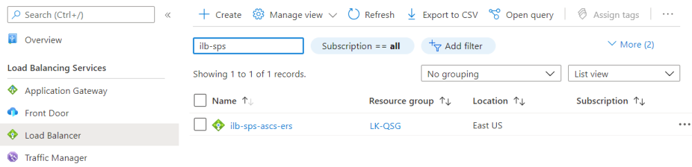 - Create a single Load Balancer in Azure, ilb-sps-ascs-ers, with the following properties.