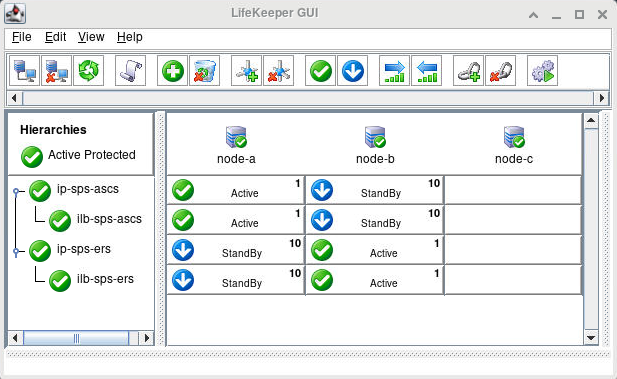 Once the dependencies have been created successfully, the LifeKeeper GUI should resemble the following image.