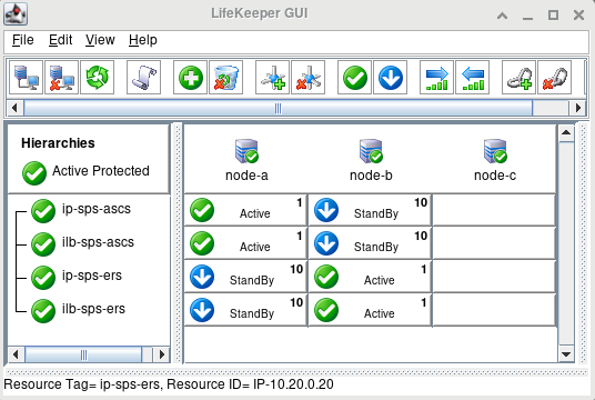 Once the IP resources have been created successfully, the LifeKeeper GUI should resemble the following image.