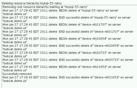 1. Another information box appears confirming that the MySQL resource was deleted successfully.