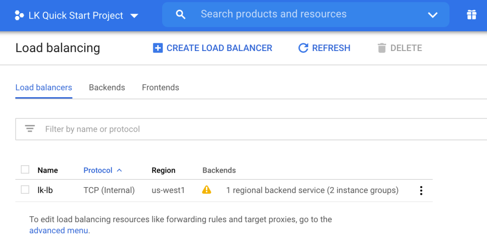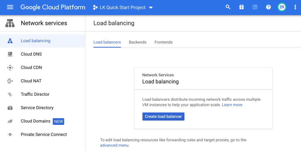 - Click “Start Configuration” under “TCP Load Balancing”.