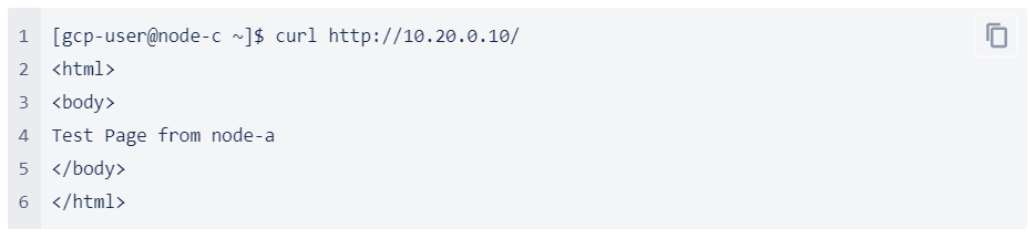 - Now the Internal Load Balancer is configured. Once you install the application to protect on node-a, you can connect to it through the frontend IP (10.20.0.10) of the ILB you have just configured. The following example shows how to check the current target for http traffic via the ILB.