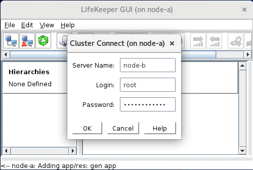 LifeKeeper(ツールバーの最初のアイコン)で [接続] を選択します。