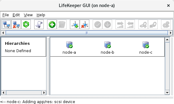 同じように node-c に接続します。これで、LifeKeeperのGUIに3つのノードが表示されました。