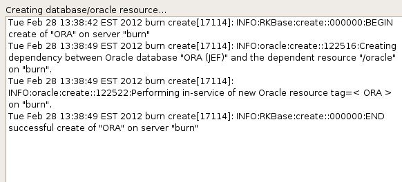 [Create] をクリックすると、 [Create Resource] ウィザードによって Oracle リソースが作成されます。