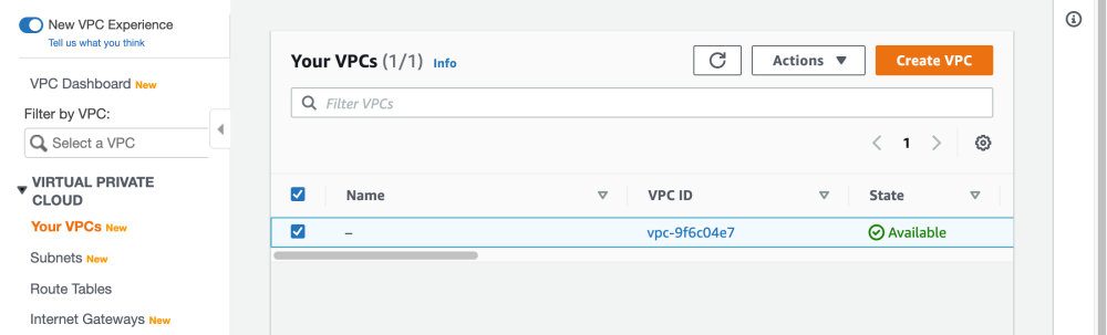 - コンソールの左側にあるナビゲーションペインから [Your VPCs] を選択します。