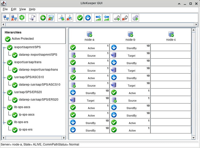 Once these steps are complete, the LifeKeeper GUI should resemble the following image.