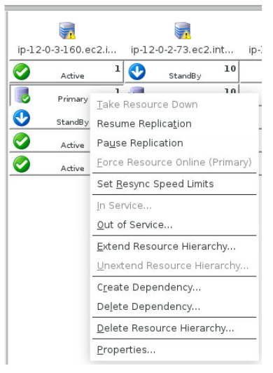 - By right-clicking on the DRBD resource and selecting an action from the popup menu.
