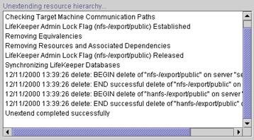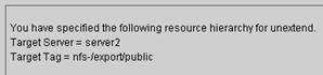 - An information box appears confirming the target server and the NFS resource hierarchy you have chosen to unextend.