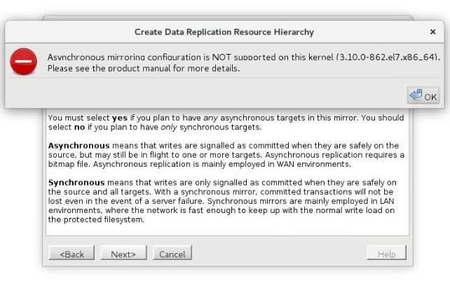 Asynchronous mirroring configuration is NOT supported on this kernel (<linuxカーネルのバージョン>). Please see the product manual for more details.