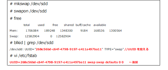 Oracle をインストールするには3GB 以上の Swap 領域が必要です。インスタンスにアサイン済の 10GB のディスク(/dev/sdd)を使用して Swap エリアを構成します。