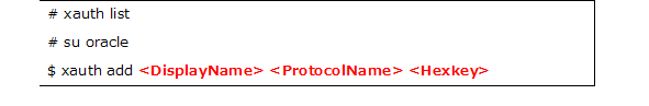 - oracle ユーザーの xauth の出力結果が root と同じであることを確認します。