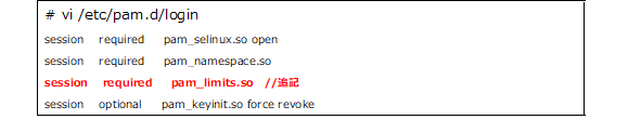 - /etc/pam.d/login 14 行目あたりに追記します。