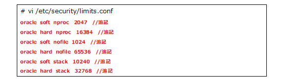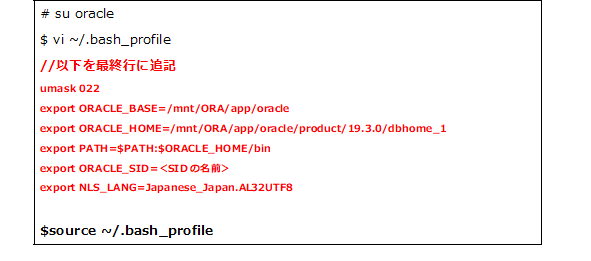 - Oracle 用の環境設定をしておきます。作業は前の手順で作成した「oracle」ユーザーで行います。