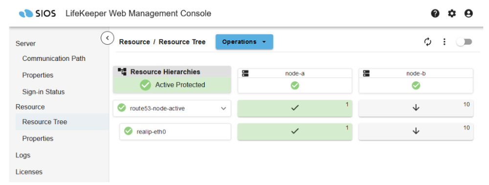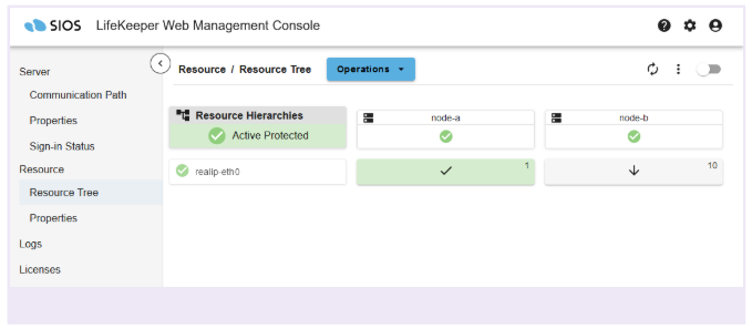 Once the IP resource is created, the LifeKeeper User Interface should look like this.