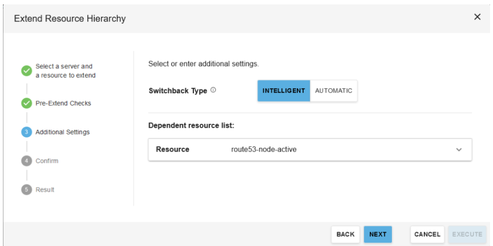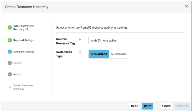 - For additional Settings, select “Intelligent” for switchback type, and select the route53 resource created in steps 1-4. Then click “Next”.