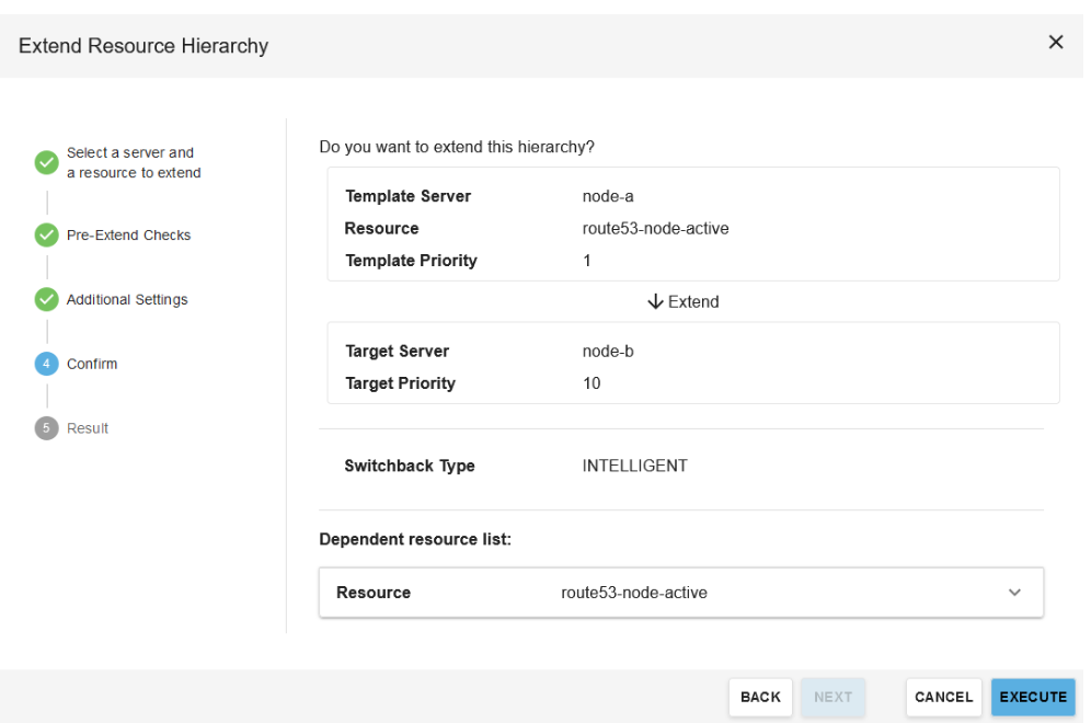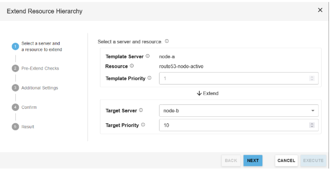 - When prompted to select options for extending the resource hierarchy, use the default options. Then click Next.